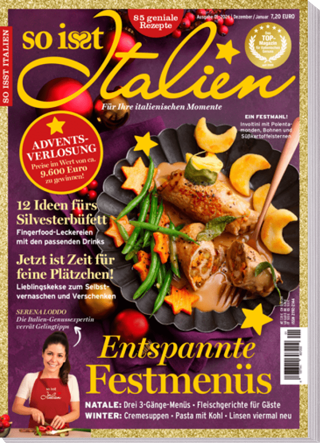 Genieße die festliche Küche Italiens mit der aktuellen Ausgabe von „So isst Italien”! Lasse dich von unseren köstlichen Drei-Gänge-Menüs inspirieren und versüße dir die Adventszeit mit verführerischen neuen Plätzchenhits. Genieße außerdem herzhafte Klassiker wie Pasta mit Kohl, heiße Cremesuppen und zarte Braten, die deine Gäste begeistern werden.